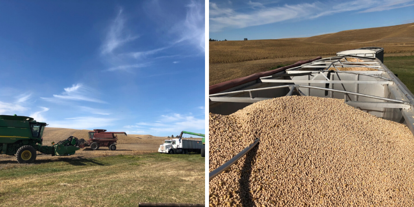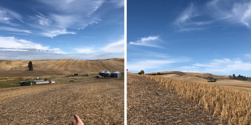 The Palouse region, where Howard lives, allows for their primary crop to be wheat on their 1,000 acres of farm. Howard also grows dry peas and garbanzo beans, as well as seed barley, barley for human consumption, and canola oil seed crop. Due to their climate, Howard says they are limited to what they can grow but having pulses as a rotational crop helps put nitrogen back in the soil for other crops.