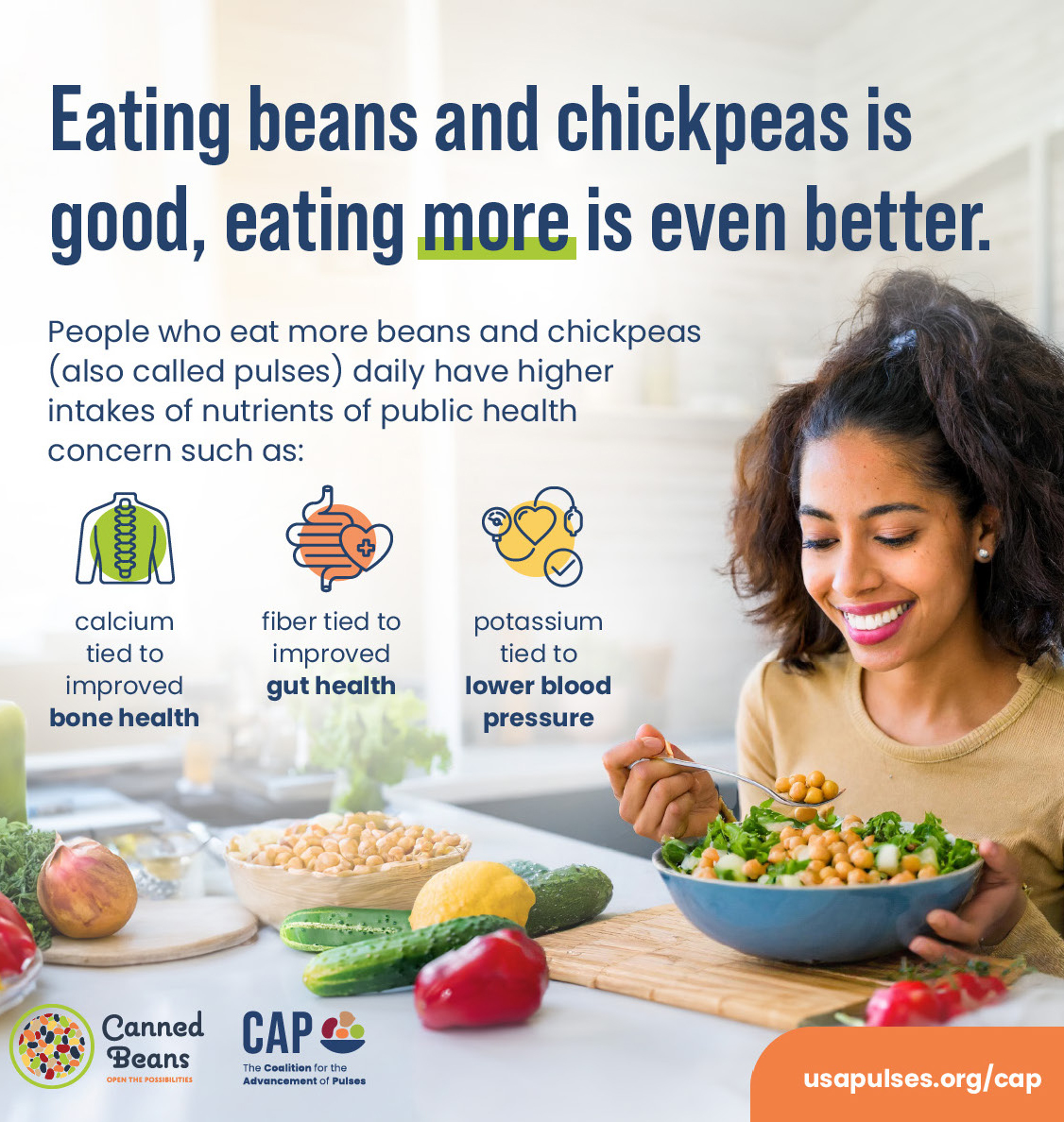 The Coalition for Advancement of Pulses (CAP) is an initiative led by the American Pulse Association (APA) with support from the USA Pulses (USA Pulses), the Pulse Foundation, the U.S. Dry Bean Council (USDBC), and the U.S. Pea and Lentil Trade Association and represents a collective of pulse crop growers, processors, manufacturers, and related organizations. The Coalition for the Advancement of Pulses is committed to increasing the consumption of pulses in the United States by increasing research on the nutritional benefits of pulses and growing awareness about the many health benefits of pulses.