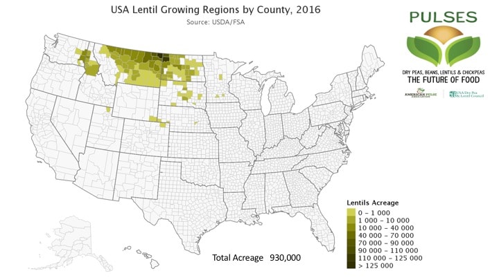 Nearly 90 percent of the lentil crop in the U.S. is exported, although domestic consumption is on the rise. Export markets include Asia, the Middle East, Latin America, Europe, and Africa. Recent niche markets for small Spanish brown lentils (Pardina variety, grown for sale to Spain) and red lentils (Crimson variety, grown for sale to the Asian market) have provided greater profitability than the traditional large yellow cotyledon (Brewer variety) market. An increasing number of acres in the U.S. are being seeded with specialty lentils like the Pardina and Crimson.