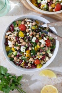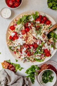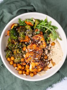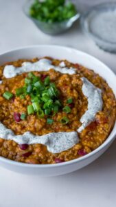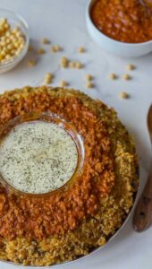 Taco-Stuffed Sweet Potato with Crispy Chickpeas & Sriracha Yogurt Sauce