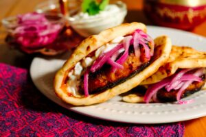 Middle-Eastern Lamb and Lentil Meatballs Salted Tahini Yogurt Pickled Cucumbers and Herbs