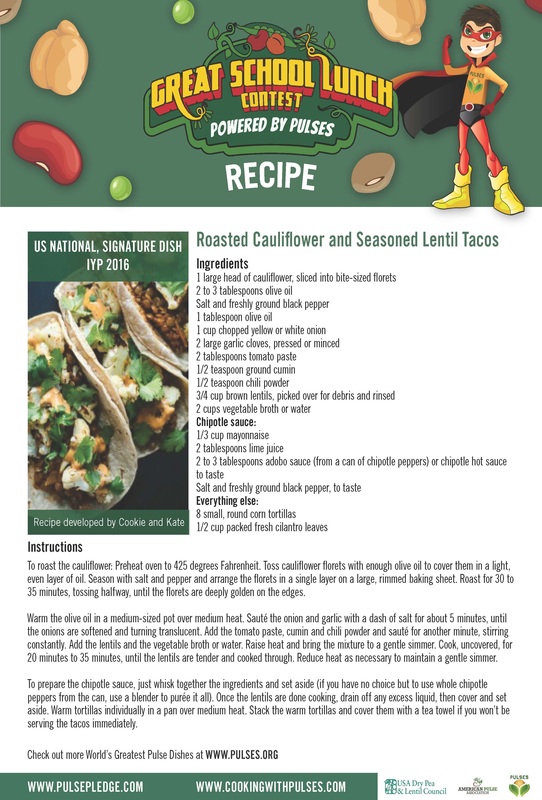 Find a variety of recipes below to add to your upcoming menu! Beans, dry peas, lentils and chickpeas are excellent sources of fiber and in protein, vitamins and minerals, and they help you meet the National School Lunch Program Guidelines. Pulses can credit either in the beans and peas sub-category of vegetables or in the meat/meat alternate category in the National School Lunch Program.